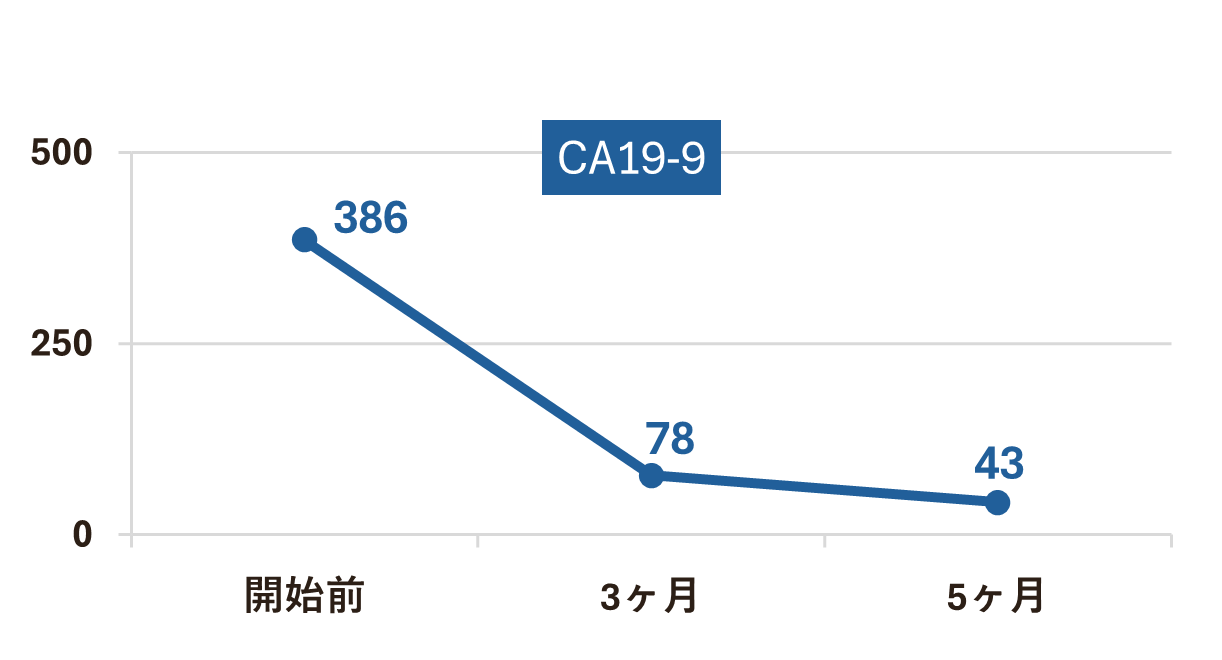 CA19-9:78→43へさらに減少 CEAは正常範囲内へ